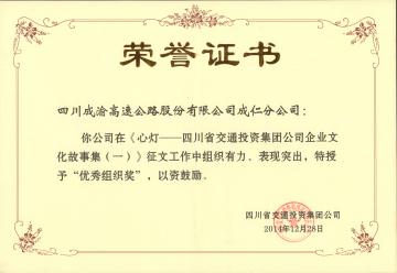 成仁分公司荣获交投集团企业文化故事集征文大赛“优秀组织奖”